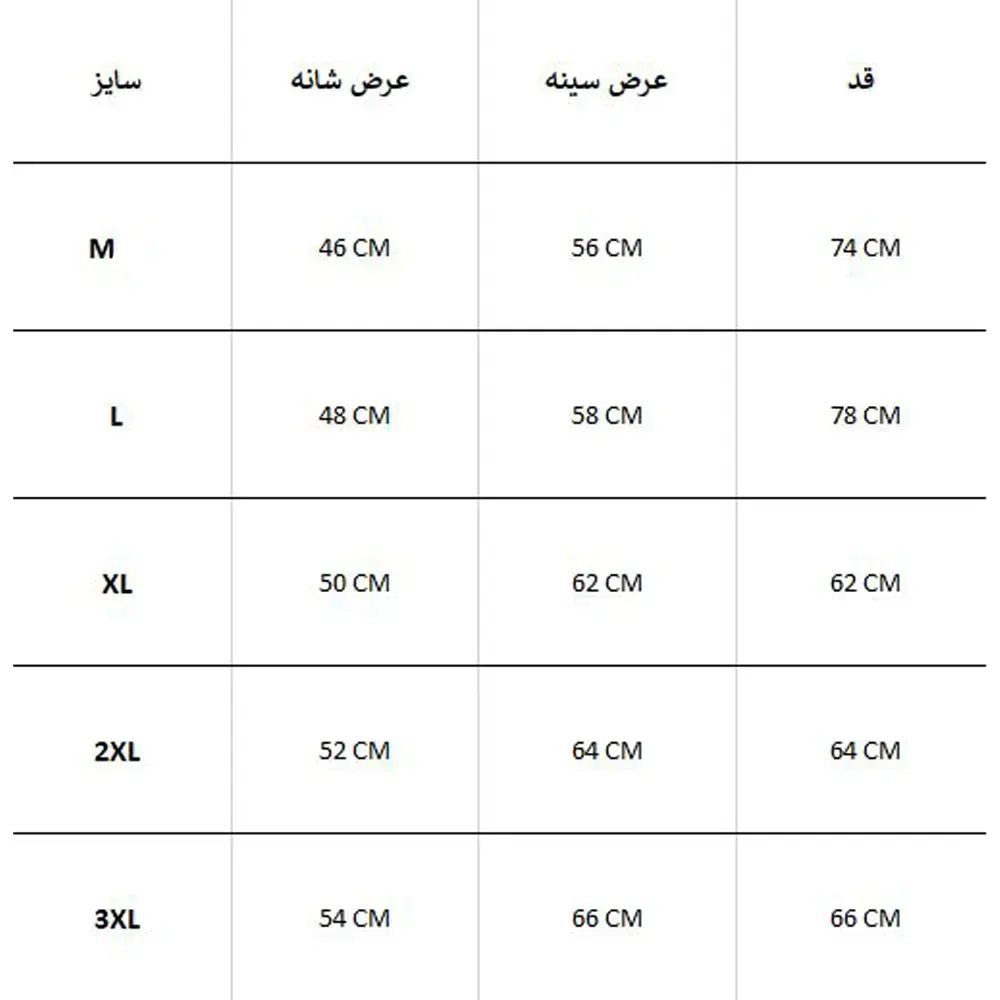 - قواره بزرگ(جدول سایزبندی را ببینید)