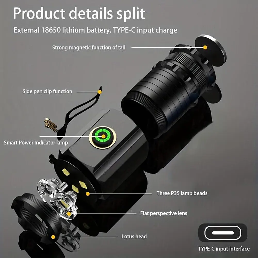 وجود یک باتری 8800 میلیآمپر ساعتی داخل همچین چراغقوه جمعوجوری، واقعاً غیرمنتظرهست. این یعنی توی استفادههای طولانی، گشتزنی شبانه، کارهای صنعتی، کمپینگ و کارگاه، هرگز با مشکل تمام شدن ناگهانی شارژ مواجه نمیشی 🔋⚡.
