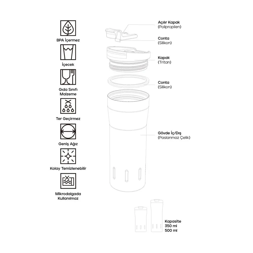 تمام بخشهای پلاستیکی ماگ دو جداره SANTECO KARIBA 500 ml از مواد BPA-Free ساخته شدن 🧪