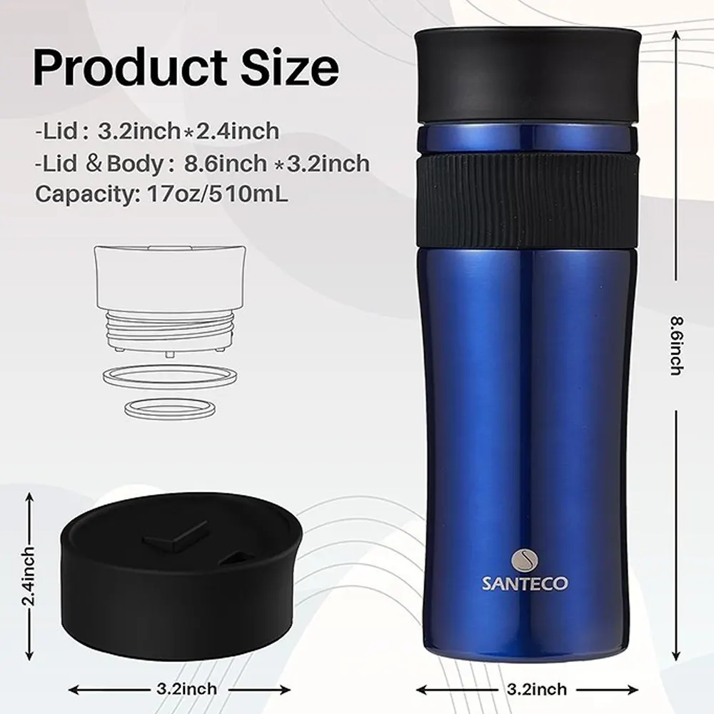 ماگ دو جداره SANTECO ORSA 510 ml با ابعاد 21.5×8×8 سانتیمتر طراحی شده است؛ ابعادی که بهراحتی در دست قرار میگیرد و در اکثر جا لیوانیهای خودرو نیز قابل استفاده است. وزن آن تنها 391 گرم است که تعادل مناسبی بین استحکام و سبکی ایجاد میکند.