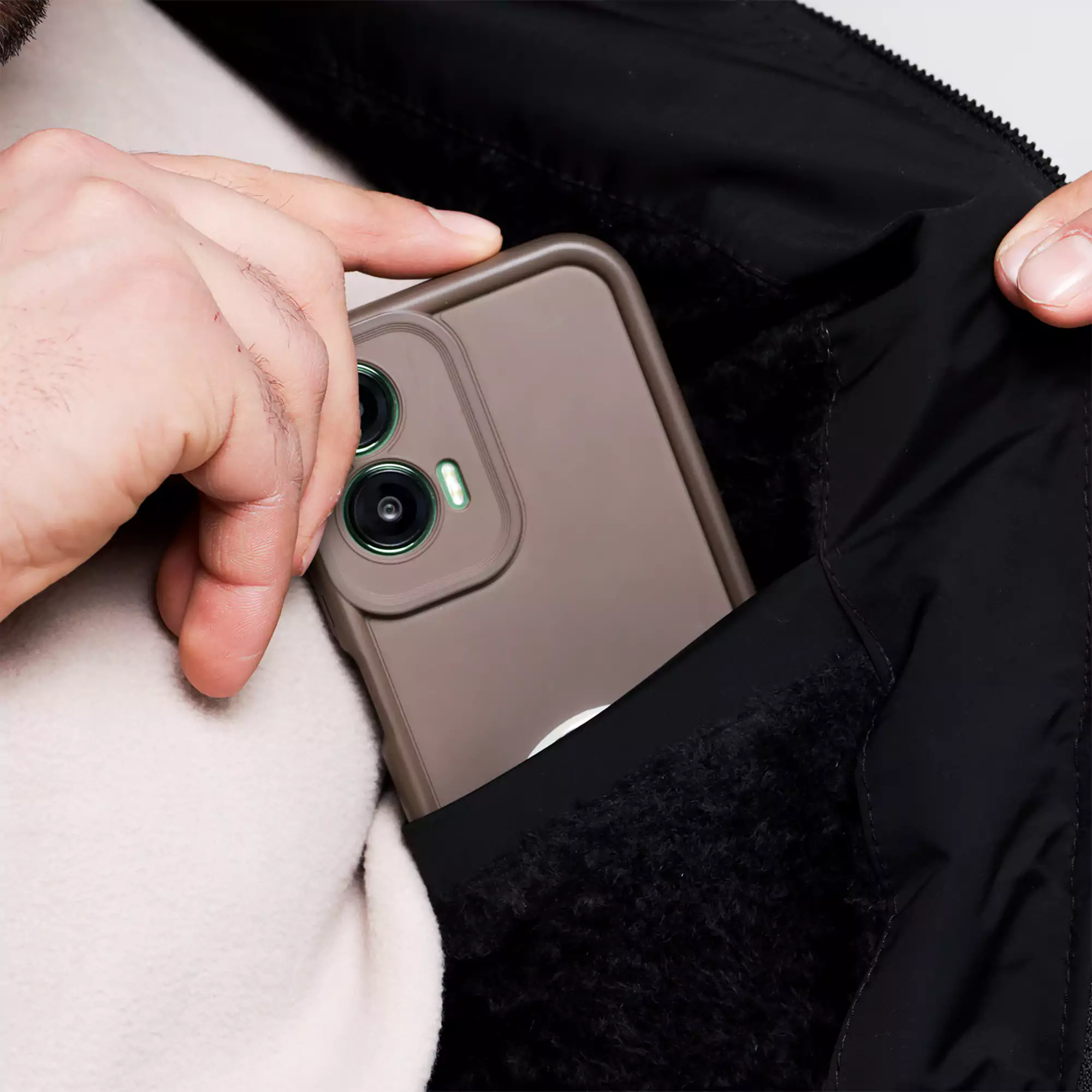 پافر کلاهدار SELECTED با تمرکز بر کاربردپذیری طراحی شده است. دو جیب زیپی در طرفین، فضای امن و مناسبی برای نگهداری وسایل ضروری مانند تلفن همراه، کیف پول یا کلید فراهم میکند. علاوه بر آن، وجود یک جیب زیپی روی سینه دسترسی سریعتر و ایمنتر به اقلام پرکاربرد را ممکن میسازد