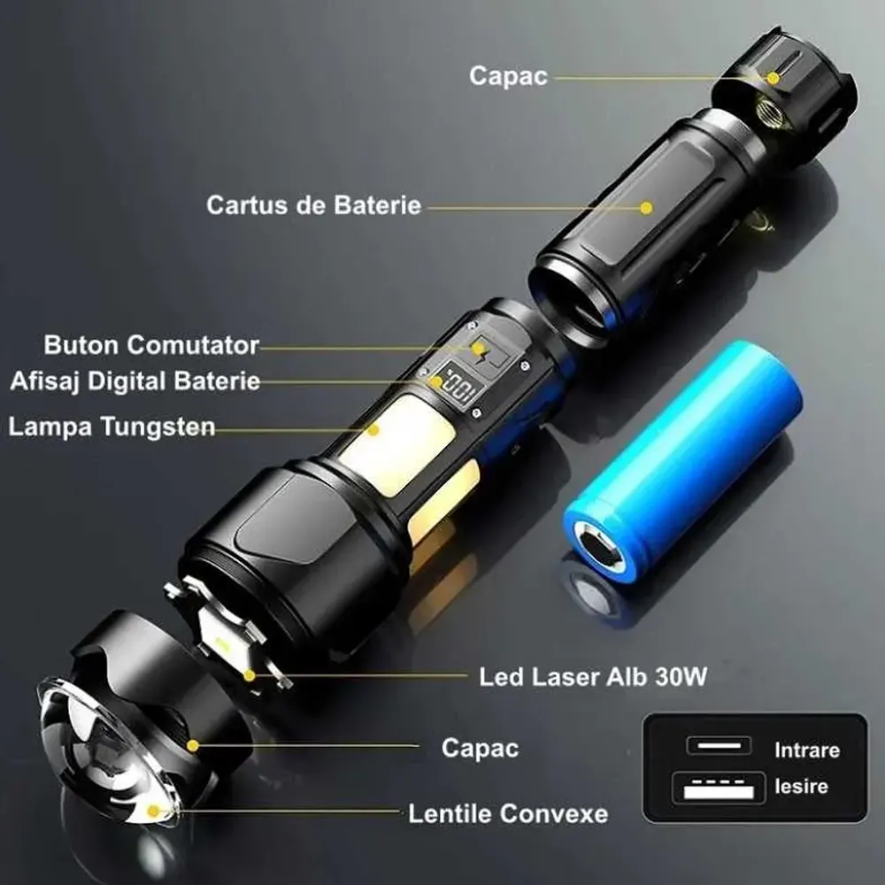 درون چراغ قوه پليسی X-BALOG SY2305-TG یک باتری قابلشارژ 9800 میلیآمپر بر ساعت قرار گرفته—میزانی که کاملاً واقعی، منطقی و فوقالعاده کاربردی است.